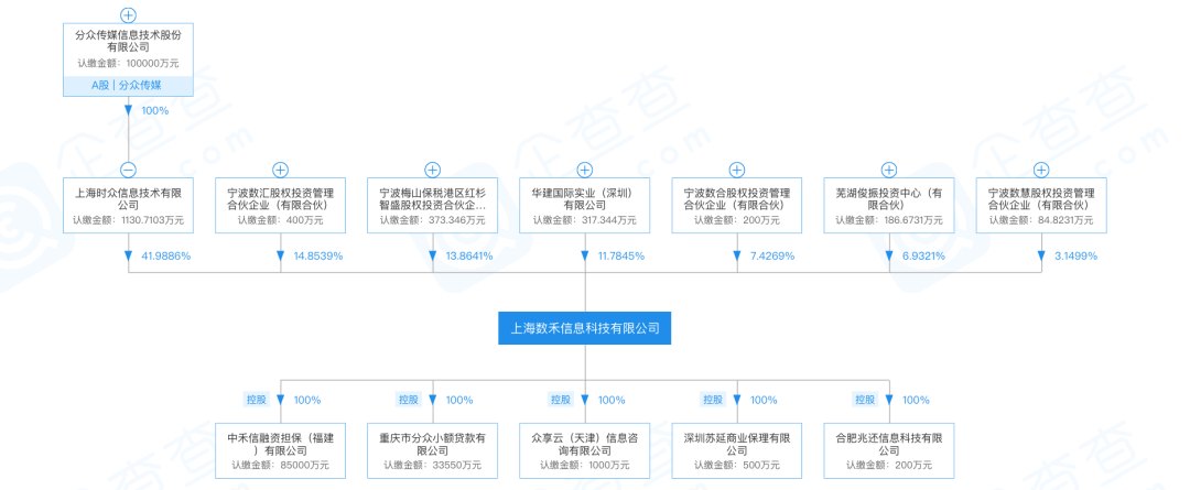 数禾科技与分众传媒的关系,要从2016年说起。当时,数禾科技初期注册资本1000万元。2016年3月,分众传媒共出资1亿元取得数禾科技70%的股权。