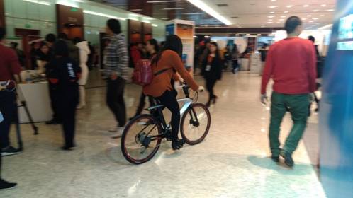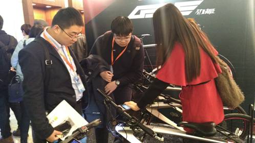 而对于普通骑行爱好者而言,新鲜强大的功能与炫酷的外观已足以让他们踩下踏板,开始一段全新的骑行体验。流线型的外观设计,包括头灯、尾灯、示宽灯、转向灯在内的整套灯光系统,本地音乐,骑行数据监测,一键锁车,实时对讲等强大功能不仅对男性用户充满吸引力,也让女性用户对其一见钟情。从事广告行业的王小姐对超级自行车爱不释手,骑着车在会场内兜了好几圈:“这辆车骑着很舒服,外观感觉很时尚。我自己平时也经常骑车,这辆车实在是太酷了!”