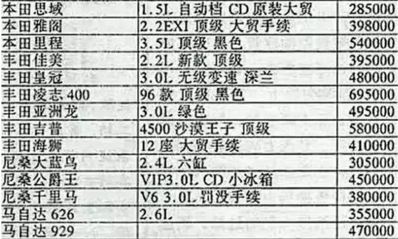 很多人提起马自达的经典车型,就会想到马自达6,但很多人并不知道它还有一款旗舰车型——马自达929。在当年它可不比前面提到的公爵王等经典车型差到哪儿去。从上方的报价表也可以看出,它在1996年的售价高达47万元。