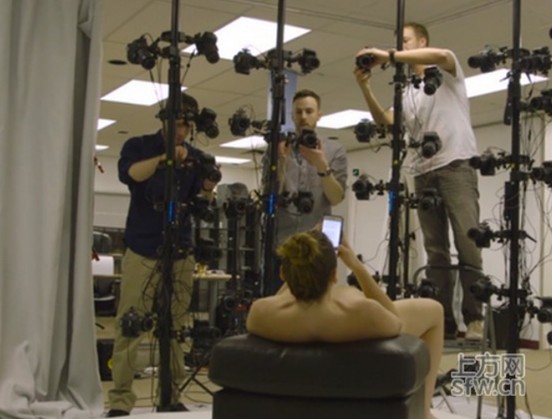 表面上,3D色情内容的制作过程应该和制作3D打印模型的3D扫描过程并不一样,但实际上两者颇具共通之处。表演者Tori Black在112台佳能Rebel相机搭建的阵列中摆出各种各样的姿势,这些相机将拍摄到的高质量图片输入到特定的软件中进而合成高质量的三维模型。