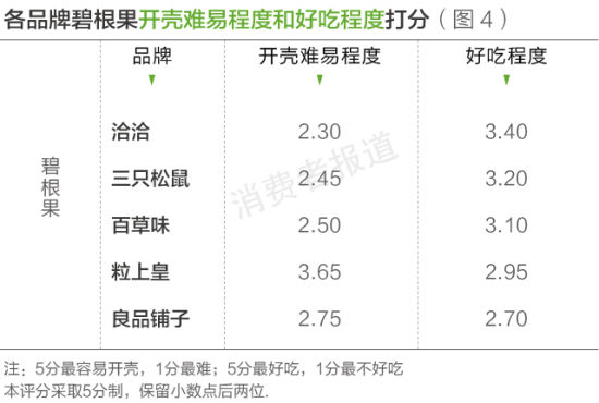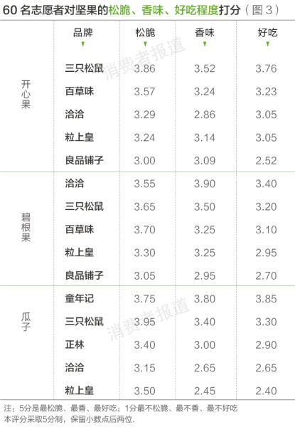 测评结果显示,三只松鼠品牌的开心果受到志愿者普遍的欢迎,在碧根果和瓜子系列产品中,消费者更加青睐洽洽和亚林童年记。