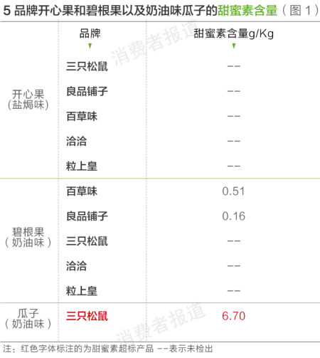 测评报告一:一款瓜子甜蜜素超标 多款坚果实际盐含量与标签不符