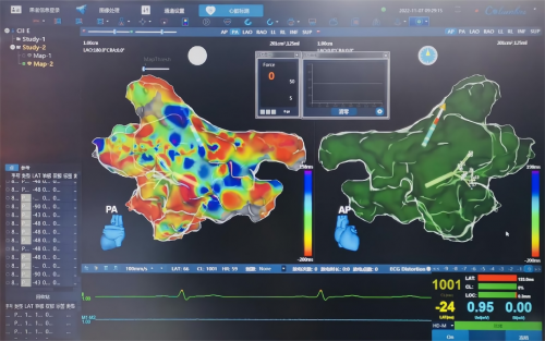同时,系统可支持压力感应模块,并结合微创电生理的压力感知磁定位灌注射频消融导管实现压力感知数值实时显示、导管头端压力向量实时指导、实时绘制压力曲线、监控压力变化范围、以EI指数及量化消融提升手术成功率和安全性等功能。