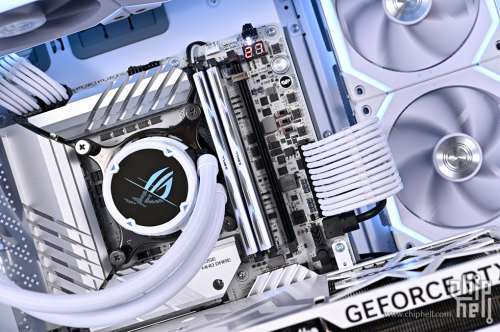 为了搭配浅色桌面,参赛选手特意选择了令自己心动的华硕ROG MAXIMUS Z790 APEX主板。其不仅颜值出众,更是拥有极为强大的超频性能,一经发布便创造多项超频纪录,不断自我超越,将13代酷睿i9-13900K处理器超频至9008.82MHz,离超10G全人类感谢又近了一步!外观采用浅银白装甲+浅色PCB,大面积散热片采用交错堆砌形式,以呈现APEX主板标志性的“X”造型,芯片组散热片斜切截面还有别具一格的ROG LOGO字样,尽显信仰之力!该主板单品京东售价5499元。