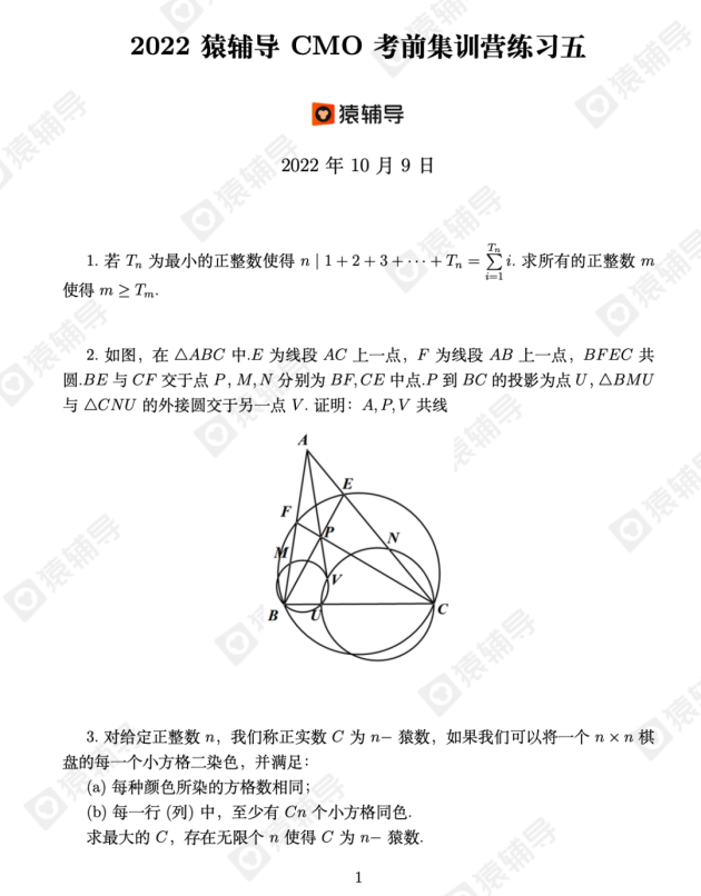 (猿辅导高中数学竞赛 · 小班教学专属套卷)