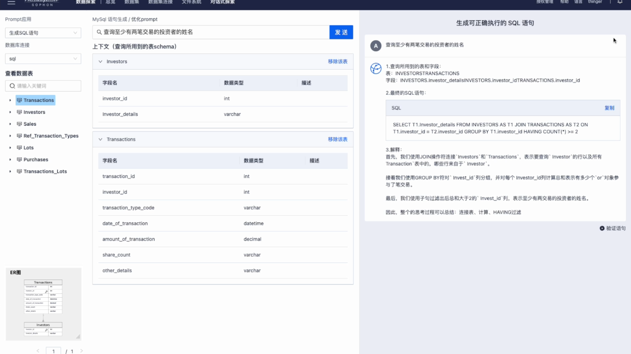 图:大数据分析大模型SoLar求索的NLP2SQL功能
