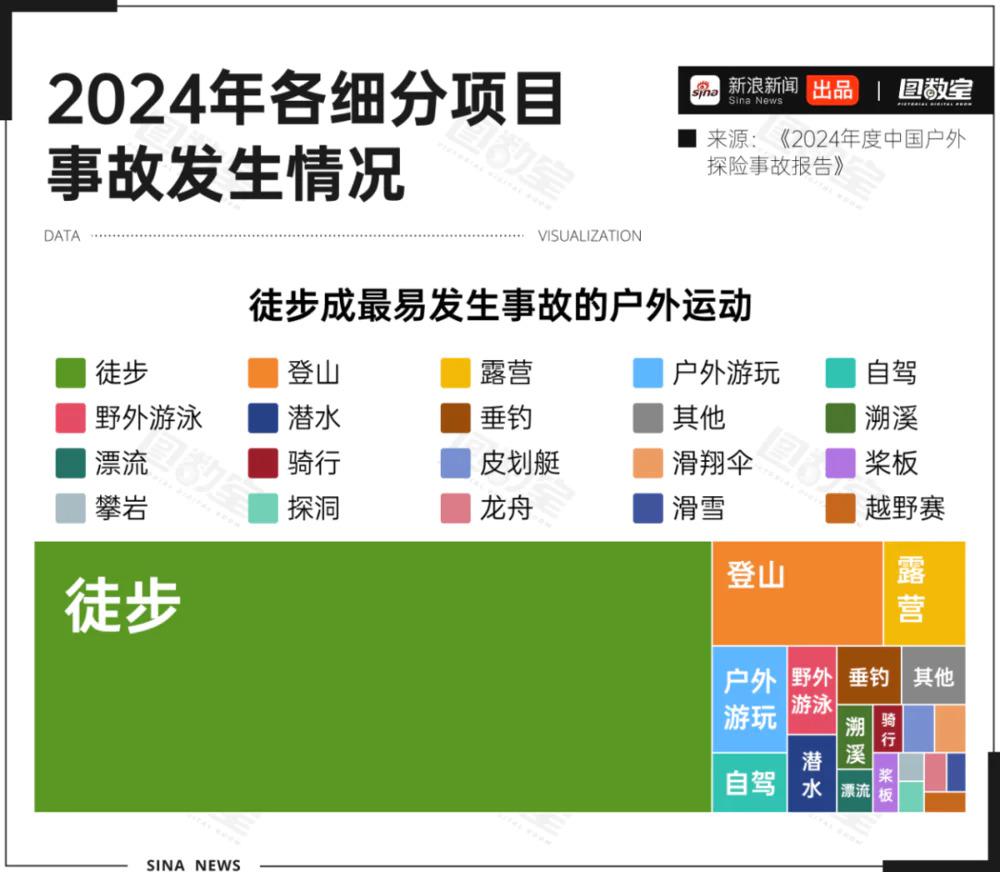 中国探险协会探险研究专业委员会发布的《2024 年度中国户外探险事故报告》显示,2024 年共发生户外探险事故 335 起,涉及人员 1126 人,受伤 92 人,死亡 84 人,失踪 11 人。其中徒步项目涉及人员高达 822 人,占总事故涉及人数的 73%。而徒步占事故中最大比例的原因是,迷路。