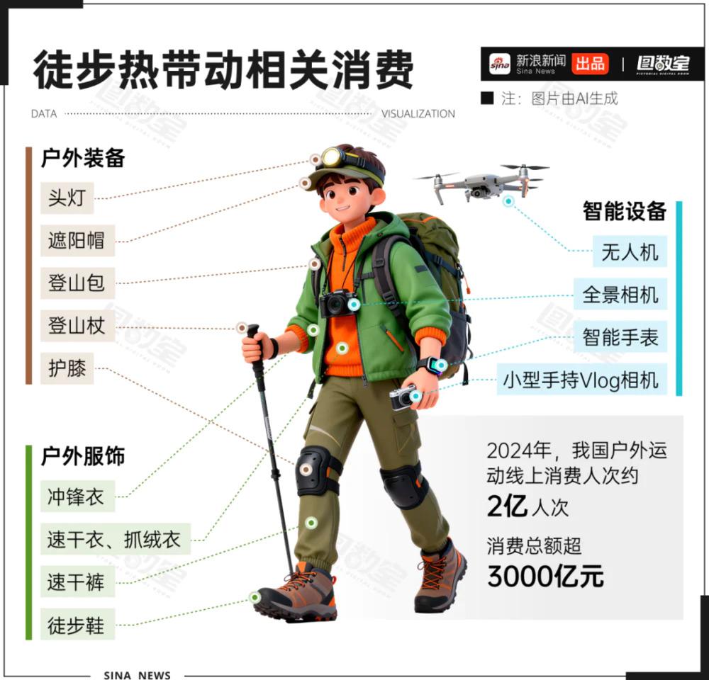 随着徒步旅游逐渐从小众爱好向大众需求转变,也带动了相关领域的消费。