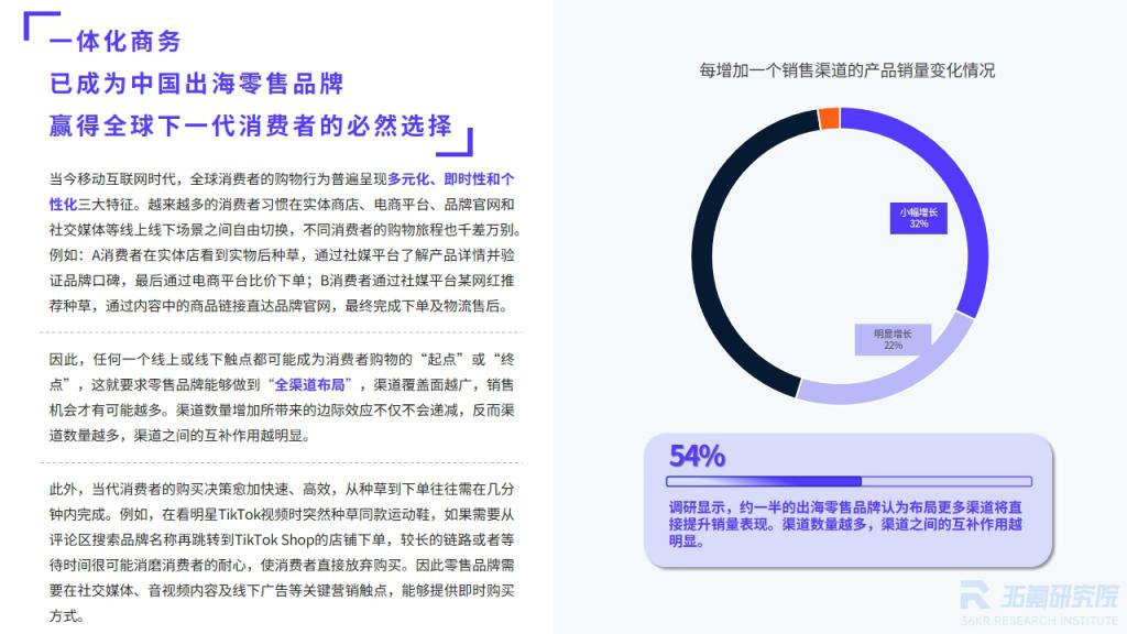 在全球化与数字化浪潮的双重驱动下,中国出海零售品牌正迎来以 " 一体化商务 " 和 " 智能体商务 " 为核心的两大战略性变革。本报告基于对 500 家中国出海企业的深入调研,系统梳理了品牌在全球化进程中面临的关键挑战、发展机遇与未来路径,旨在为行业提供前瞻性战略参考。