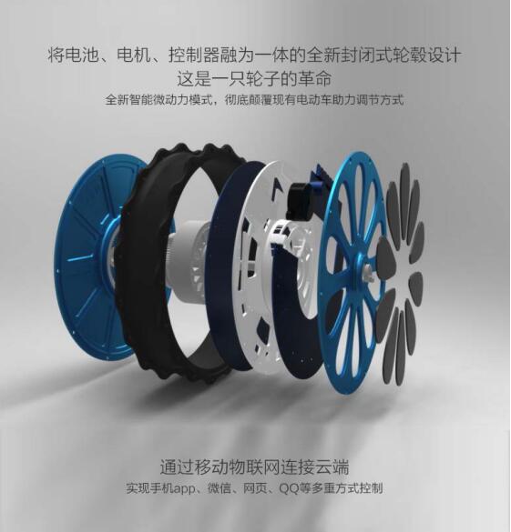 将电池、电机、控制器融为一体的全新封闭式轮毂设计,彻底颠覆现有电动车助力调节方式,通过移动物联网连接云端,实现手机app、微信、网页、QQ等多重方式控制。没有任何外部线路和开关,无需改动车辆任何配置,安装仅需三分钟:第一步:卸下原车轮;第二步:安装吕布智能微动力车轮;第三步:调节助力模式。