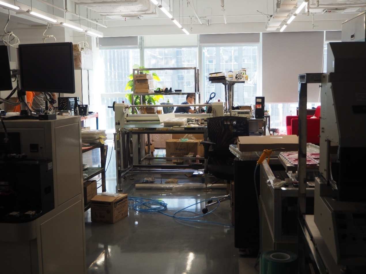 (目前位于深圳超多维大厦16M层的实验室已经和10年前的厕所实验室不能同日而语,在仪器中间,一名工程师正在作业)