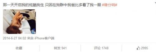 2015年1月31日王思聪发了这样一条微博,让自己的爱狗走红。然后各种网站的娱乐版开始宣传。