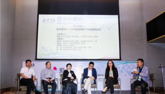 在《资本重构专场》论坛,同创伟业董事长郑伟鹤,深圳前海问道控股有限公司、狮子公学教育控股有限公司董事长贺宇,深圳前海创投孵化器有限公司董事长,前海勤智国际资本总裁汤大杰博士,一体集团董事长刘丹宁,正和岛联合投资基金管理有限公司总裁陈里等嘉宾在深圳魔豆创业孵化科技有限公司董事长杨涛的组织下,一起讨论了IPO加速背景下资本与实业的选择等话题,并分享了资本与人性、资本助力实体经济以及智能时代资本新方向等内容。