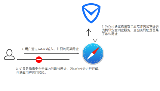 (图:Safari浏览器内置腾讯安全云库能力,实现欺诈网址识别功能)