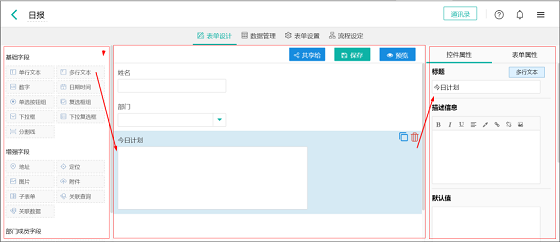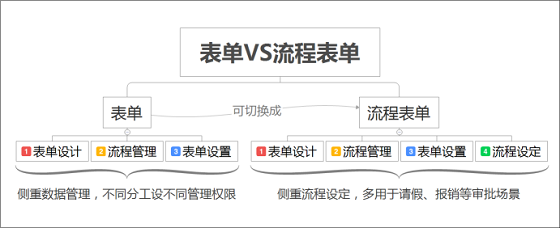 2 表单:简道云的表单分普通表单和流程表单,其中流程表单比普通表单多一个流程设定功能,表单主要分为表单设计、数据管理、表单设置三大模块。