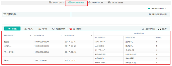 数据管理中的数据,有三个来源:一是本表单分享出去后收集来的数据汇总,二是管理者在后台直接录入的数据;三是导入Excel获得的数据。