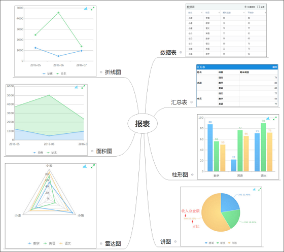 4 报表:报表在简道云里是一个挺有意思的部分,和聚合表并列为【看上去很难,其实很简单】的两大存在。上面表单收集来的数据,都通过报表来进行分析和处理,表单中一旦录入新数据,报表也会实时更新。