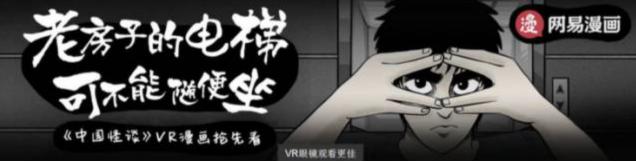 ——动画版。在2016年《中国怪谈》推出动画版之际,网易漫画根据《中国怪谈》中的“地狱电梯”章节推出了国内首部VR动漫,这是国漫首次的VR尝试,也开创了漫画+VR的跨次元粉丝营销。