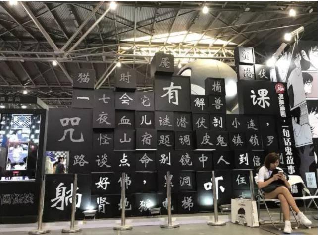 在展会现场,网易漫画将被征集来的一句话鬼故事制作成了“一句话鬼故事”墙,颇有网易云音乐“乐评”的味道,成为粉丝围观的“景点”之一。