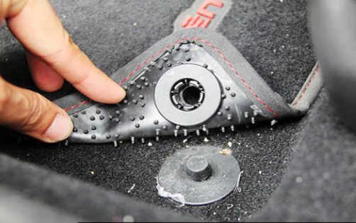 车内的地板一般会有两个或四个小凸起用来固定脚垫,购买脚垫时也要选择配有相同装置的产品。如果没有固定装置,可以选择有魔术贴的脚垫,安装时只需将魔术贴粘到车内地板即可。