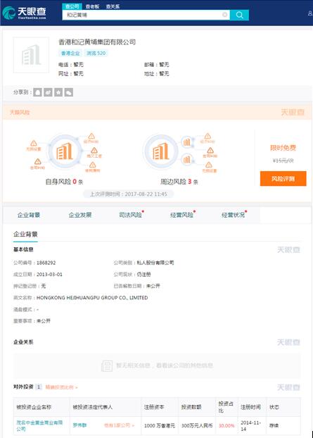 此次更新,天眼查的查询范围也扩大至香港企业。诸如公司编号、成立时间、英文名称、公司类别、公司现状、对外投资等信息都收录在内。