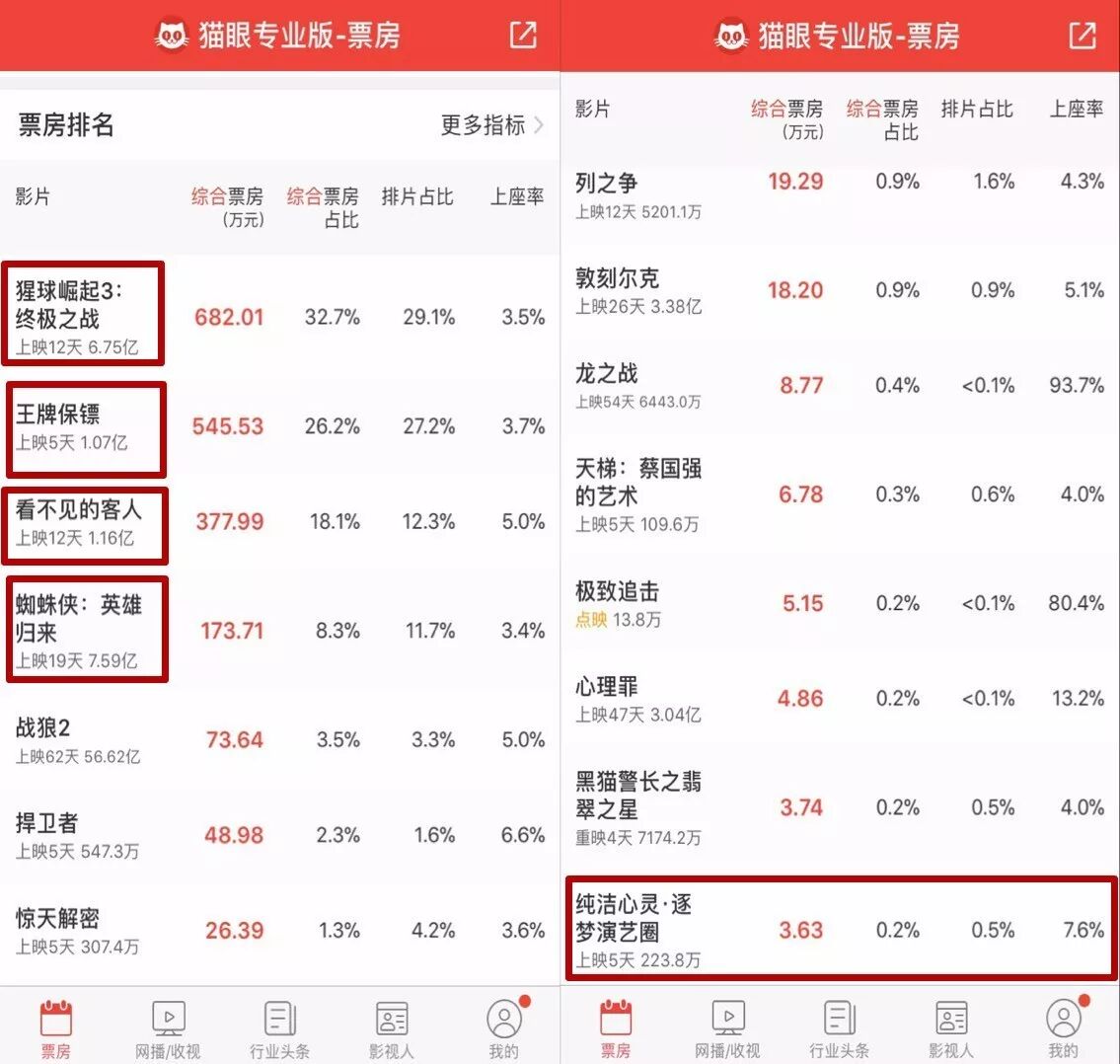 在《猩球崛起》、《蜘蛛侠》、《看不见的客人》等大片的垄断下,一部没有明星阵容,卖相无限接近网络大电影的《纯洁心灵》首日1.1%的排片怎么看都在正常范围内。
