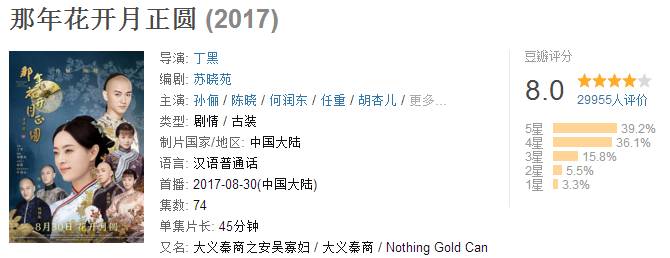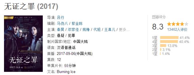 抛开豆瓣的评分机制不谈,我们看看最近的影视作品在豆瓣的评分,以热播的《那年花开月正圆》和《白夜追凶》、《无证之罪》来说,一部网台剧,两部网剧,豆瓣评分分别是8.1分、9.1分、8.3分。