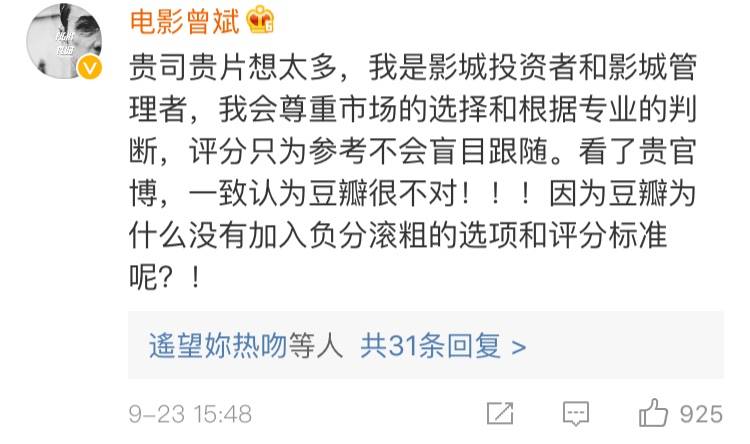 虽然导演毕志飞怒怼豆瓣,但网友却并不买账,甚至疯狂为豆瓣打Call,并呼吁豆瓣开负评,这就很尴尬了。