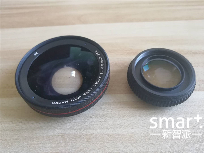 旋下广角镜头,剩下的部分就是微距镜头了。广角镜头和微距镜头之间采用的是反螺纹设计,能够轻松的分开镜头。