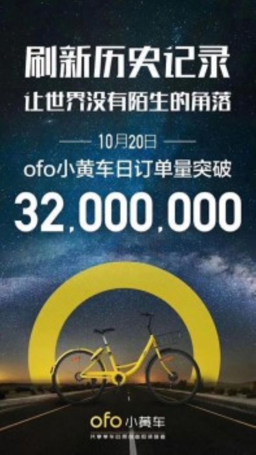 “颜值越高,责任越大”。作为共享单车的原创者与领骑者,ofo小黄车在多方面均独占共享单车市场鳌头,遥遥领先于其他共享单车品牌。10月20日,ofo宣布日订单突破3200万,再次刷新共享单车行业日订单历史最高纪录,与去年同期相比,ofo日订单量增长远超31倍,是共享单车行业增速最快的平台。随着ofo全球化布局速度的加快,年内进入20个国家200座城市的目标将提前完成,并将凭借更快、更稳定的增速持续扩大与竞争对手们的领先差距。