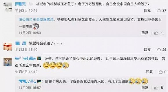 “对中国科幻电影完全没印象的说……不是由中国制作,杨威利由中国人来演还能接受。”