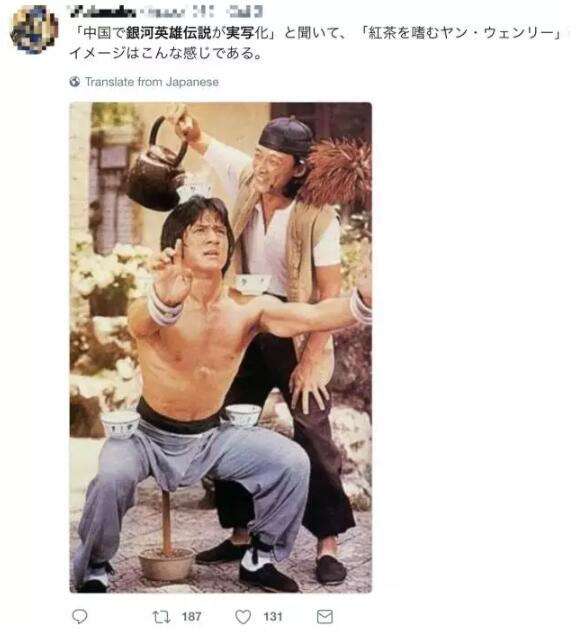 深受成龙和港片洗脑的日本网友还表示:“听到这个消息,我对‘喝红茶的杨威利’的脑洞如下”: