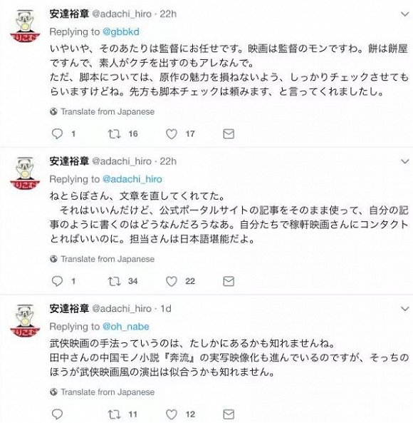 由中国进行真人化的消息被报道后,日本粉丝们纷纷涌到安达裕章的推特下提问。通常而言,日方对待卖到中国的IP,最多转发一条新闻表示“我们卖啦——”。这次他们却犹如“答记者问”般仔细回答了粉丝对演员、剧本的疑问。