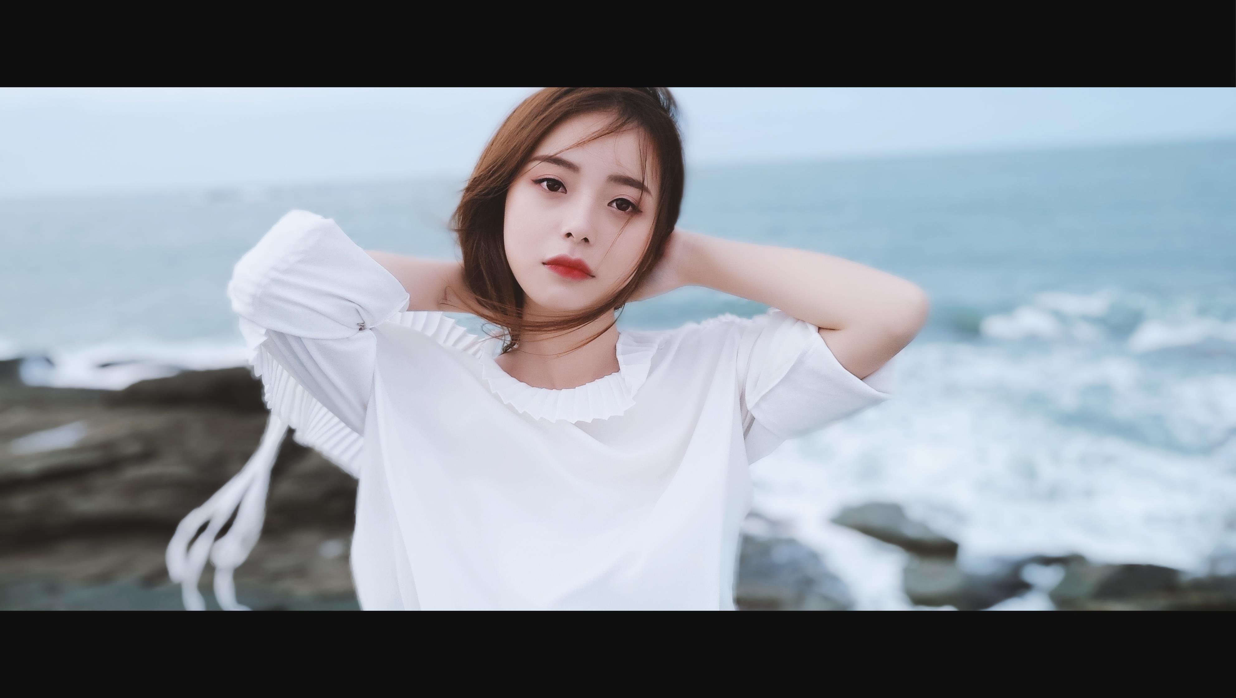 其次选择白色的衣服与海边对手机的拍摄功能是一个挑战。很多人都知道,如果想要你自己拍出来很白那么你就穿个深色的衣服,因为光笔反差与相机18度灰的测光原理会使得拍出的照片肤色偏黑。从图中大面积的白色高光区域来看,如果一般的手机拍出图片的效果基本上是一个大黑脸。但美图V6所得到的图片是一个大写的“服”,色彩还原准确,人物皮肤白里透红。最最重要的是连模特白色百褶款式的衣领部分亮部与暗部细节都极其分明。
