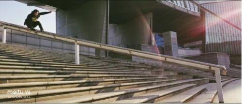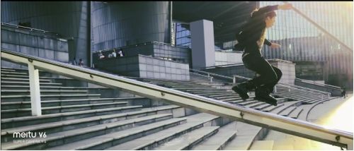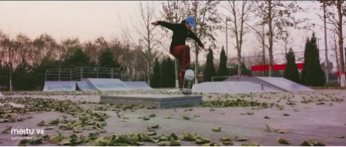 在拍摄极限运动时大多数人都比较推崇使用鱼眼镜头,拍出来的画面极具冲击力。但GoPro的鱼眼畸变总是让视觉上不太舒服。美图V6电影镜头的焦段则会让画面看上去很真实,配上电影滤镜的片子直接就可以及时分享到社交软件。