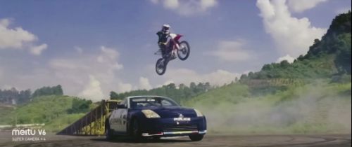 美图V6挑战极限运动拍摄惊艳 轮胎扬起的尘沙都拍得一清二楚