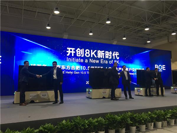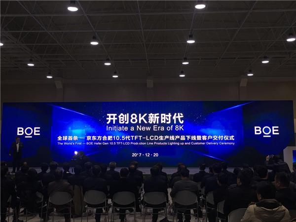 BOE(京东方)2015年在合肥自主投建的10.5代线是全球最高世代线,也是全球首条10.5代线,设计产能为每月12万片玻璃基板。在BOE(京东方)合肥第10.5代TFT-LCD生产线产品下线暨客户交付仪式上,BOE(京东方)向三星、LG、SONY、Vizio、创维、康佳、海信、长虹、TPV、小米、海尔等客户交付了75英寸8K 60Hz、75英寸8K 120Hz等大尺寸超高清显示屏。