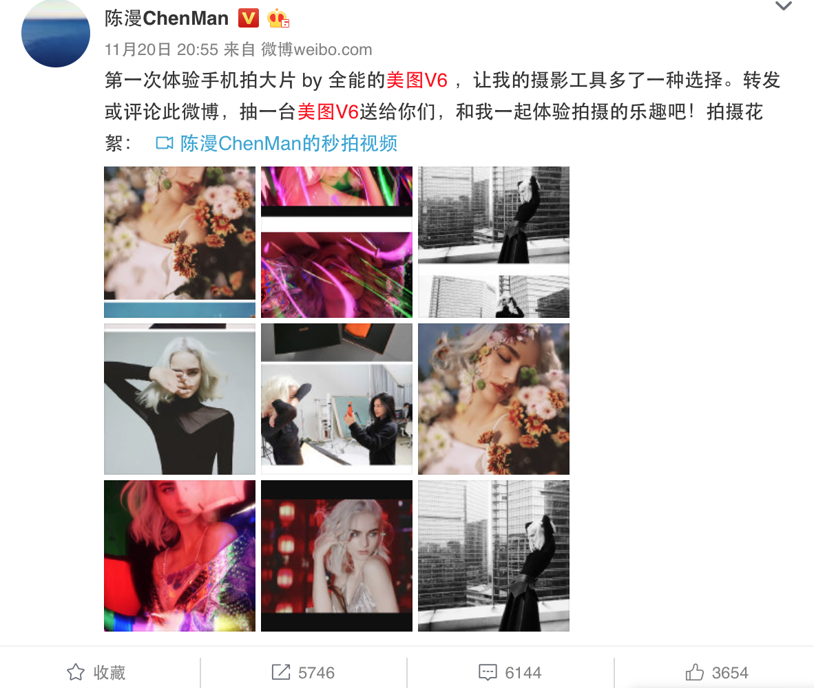 此外“天王嫂”方媛、时尚潮人韩火火、左岸潇、张沫凡、HoneyCC等也都曾在社交平台表达过对美图V6的喜爱。