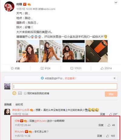 何穗在微博曾晒过美图V6