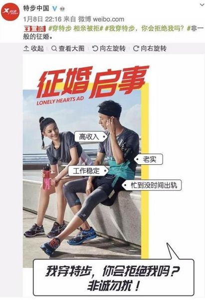 “特步男相亲被拒”之后:国货岂能被diss!