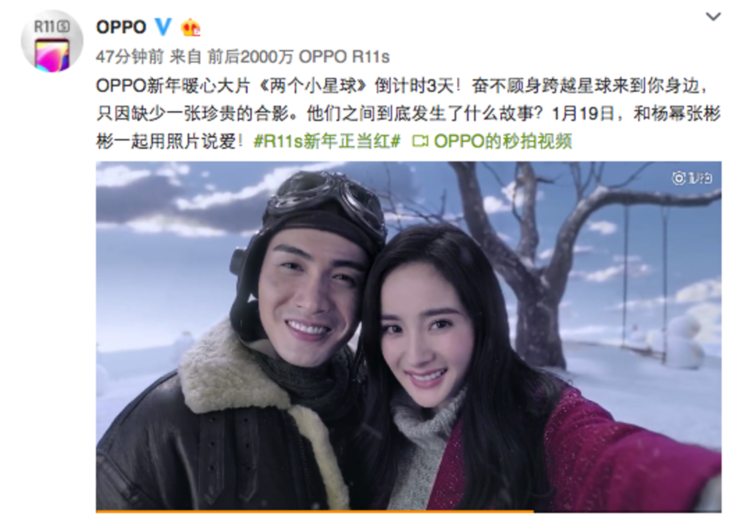 从海报来看,OPPO这部短片名为《两个小星球》,以新年为契机,为OPPO R11s打造,由OPPO老朋友杨幂和“小鲜肉”张彬彬联袂主演。