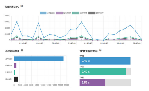 l 丰富统计维度,提供TPS、并发量、响应错误类型细分、按时延响应区间分布等统计,客观反映用户体验,客户可以快速评估出压测后系统的响应时间是否合理,及时处理。