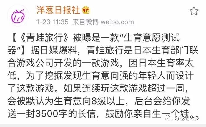 当然,一旦成为热点之后,就有很多的吐槽、谣言扩散,都在帮其提升关注度。比如“日本开发这个游戏是为了促进国民生育”,这也属于外围的社交货币,确实起到了非常好的助推效果,有点“剧情反转”的意思。