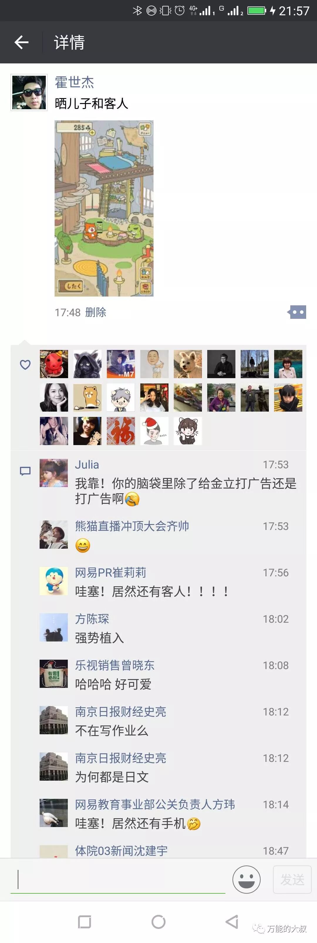 实际上,跨圈层刷屏是非常值得研究的,这个圈层是怎么跨出去的,且能在另一个圈层形成一种裂变效应。大叔的朋友、仟传网络CEO苏璇这几年就在专门研究朋友圈的“跨圈层效应”。