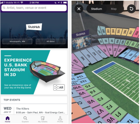 StubHub除了出售超级碗球票之外,还希望帮助球迷找到此次超级碗的举办地,位于明尼苏达州明尼阿波利斯的美国合众银行体育场(US Bank Stadium),StubHub决定运用增强现实(AR)技术完成这一任务。