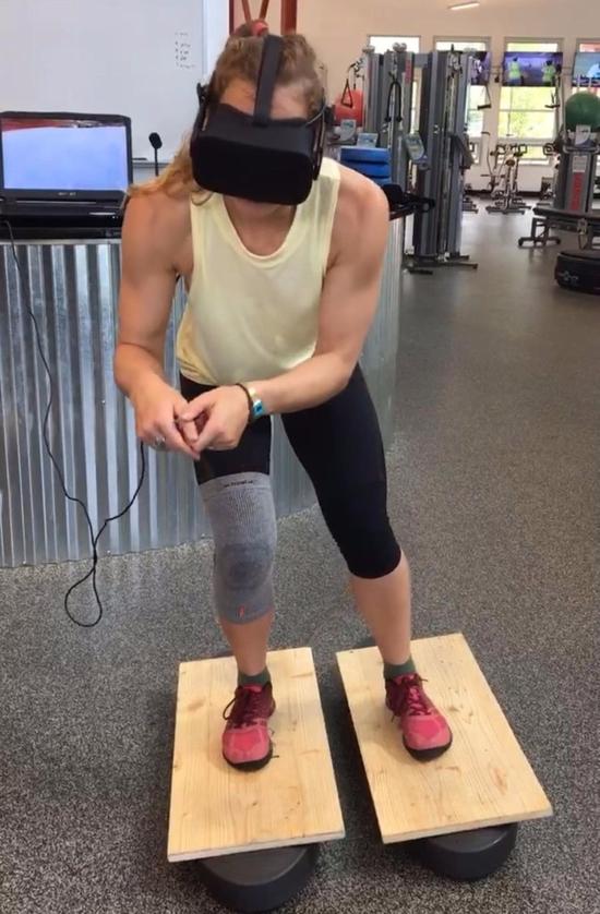 美国高山滑雪运动员Laurenne Ross正在使用STRIVR进行训练体验