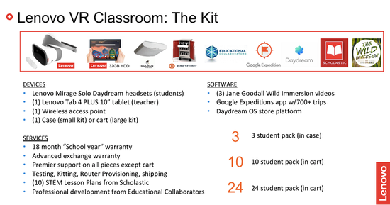 最多场景:联想发布“VR课堂”产品套装,超过 700 个 VR 实地场景