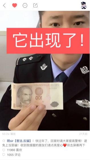 快手有位来自湖北随州比较有名气的用户“明sir”,他拍摄了百余条短视频宣传防诈骗知识,每条视频有几万至几十万不等的播放量,并有多则上万条的网友留言,大量的粉丝给“明sir”留言,感谢他的分享并鼓励他继续坚持创作。
