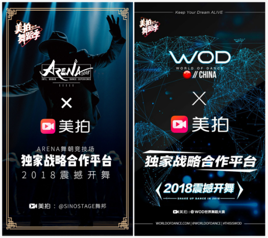 美拍与WOD、Arena都有多年的合作经验。2016年,WOD世界舞蹈大赛首次进入中国,就选择了美拍作为独家合作伙伴。2015年-2017年,美拍与Arena全球齐舞大赛进行了持续3年的深度合作关系。