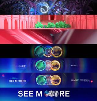 一开场华为的倒计时与开场视频就渲染了印象派浪漫巴黎的氛围:以“布达佩斯大饭店”为初创灵感,运用韦斯.安德森电影调色彩盘的手法,让观众沉浸于来自童话色彩世界里的愉悦与未来感。整体视频设计以未来的梦幻镜头为核心概念,将观众一步步带入到对未来移动镜头里“优雅视界”的憧憬中,从而衬托出华为P20系列梦幻般的色彩设计,与徕卡三摄镜头拍出的精彩世界。